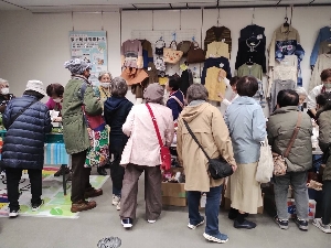 | 『私も手編みをするのよね。どなたが作ったのかしら』など、お客様のちょっとしたつぶやきから会話がうまれ、ほっこりします。また、『妻に買っていこうかなあ。いらないと言われたら嫌だけど』と迷いに迷って買って行かれた男性。奥様はなんとおっしゃったのでしょう・・・? 12時前には値引きスタート。一層、会場に活気が出てきます。 そして、10:00から13:00までの3時間が、あっという間にすぎていきました。会員の皆さま、ご協力ありがとうございました。楽しい1日になりました。 |